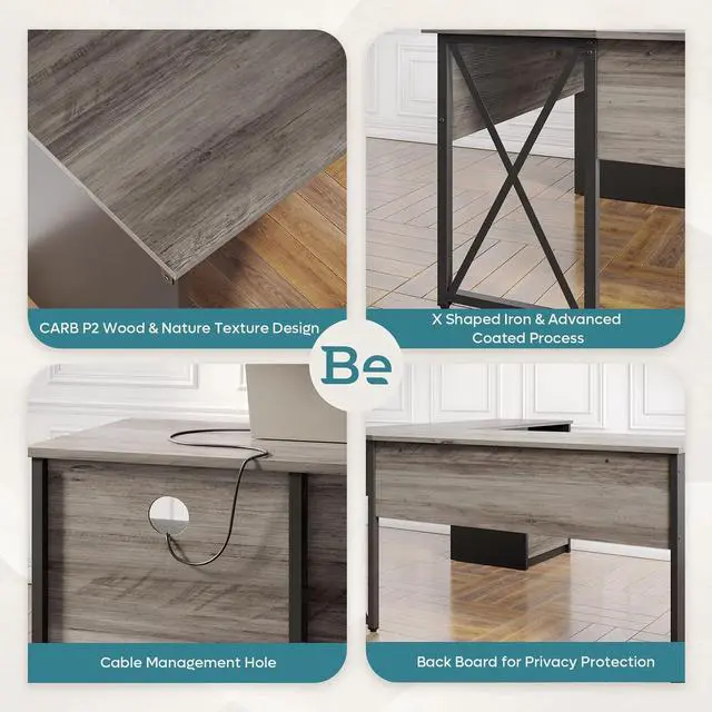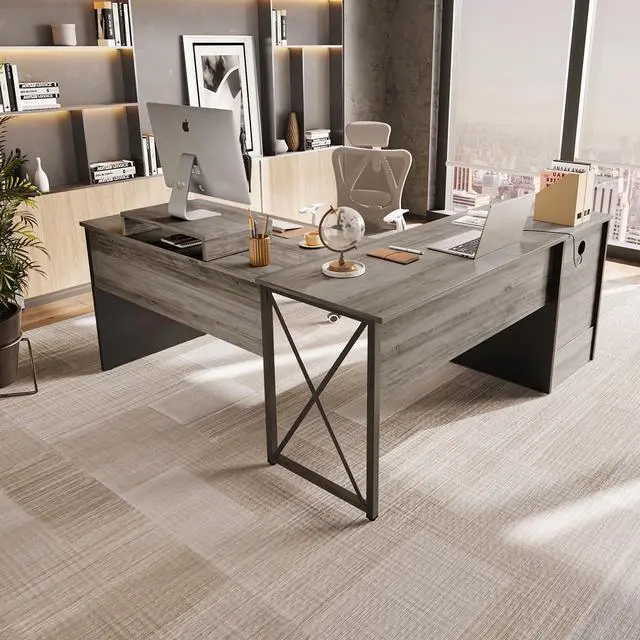 • Spacious Dimensions: Desk dimensions are 55.71"L x 55.12"W x 30.00"H, providing a large workspace for multiple monitors and office supplies.