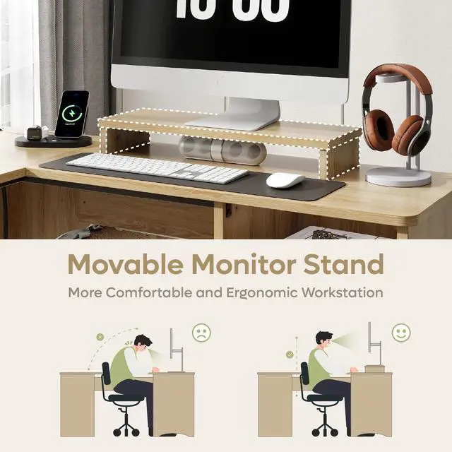 • Spacious L-Shape: Measures 55 inches, offering a large L-shaped surface area to accommodate multiple monitors and office equipment, optimizing corner placement for maximum workspace.