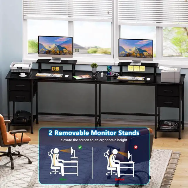 Dual Ergonomic Monitor Stands: Create a healthy and efficient workspace for one or two users. The desk includes two fully movable monitor stands that raise screens to an ideal eye level, reducing neck and back strain. Position them anywhere for optimal comfort.