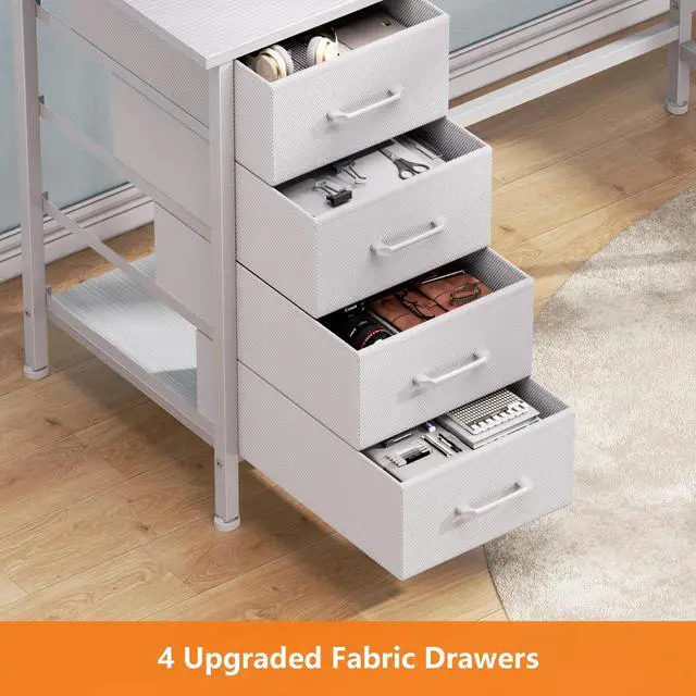 Ample & Adaptable Storage: Enjoy organization made easy. This desk comes with 4 upgraded, breathable fabric drawers that are lightweight yet spacious. They can be switched around or removed to meet your changing storage needs for supplies, accessories, and personal items.