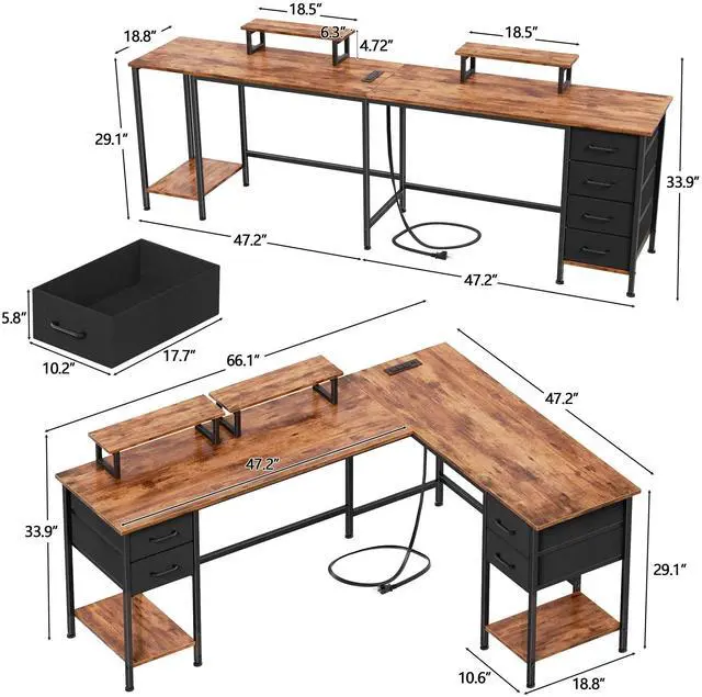 Built-in Charging Station & Flexible Layout: Power your work and play effortlessly. The desk features 3 outlets and 2 USB ports. Plus, its revolutionary design can be set up as an L-shaped corner desk or a long straight desk, allowing you to customize the layout to perfectly fit your room.