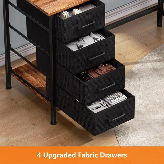 Ample & Adaptable Storage: Enjoy organization made easy. This desk comes with 4 upgraded, breathable fabric drawers that are lightweight yet spacious. They can be switched around or removed to meet your changing storage needs for supplies, accessories, and personal items.