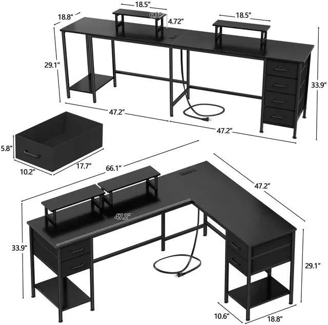 Built-in Charging Station & Flexible Layout: Power your work and play effortlessly. The desk features 3 outlets and 2 USB ports. Plus, its revolutionary design can be set up as an L-shaped corner desk or a long straight desk, allowing you to customize the layout to perfectly fit your room.