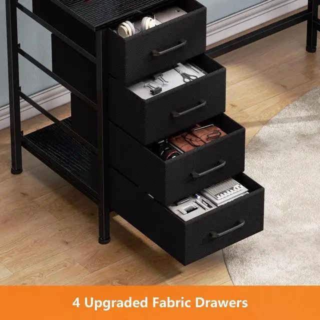 Ample & Adaptable Storage: Enjoy organization made easy. This desk comes with 4 upgraded, breathable fabric drawers that are lightweight yet spacious. They can be switched around or removed to meet your changing storage needs for supplies, accessories, and personal items.