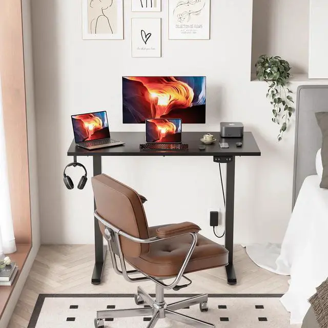 Spacious Support: Provides plenty of space for laptops and monitors with a 40" wooden desktop, meeting EPA & CARB standards, and supports up to 176 lbs