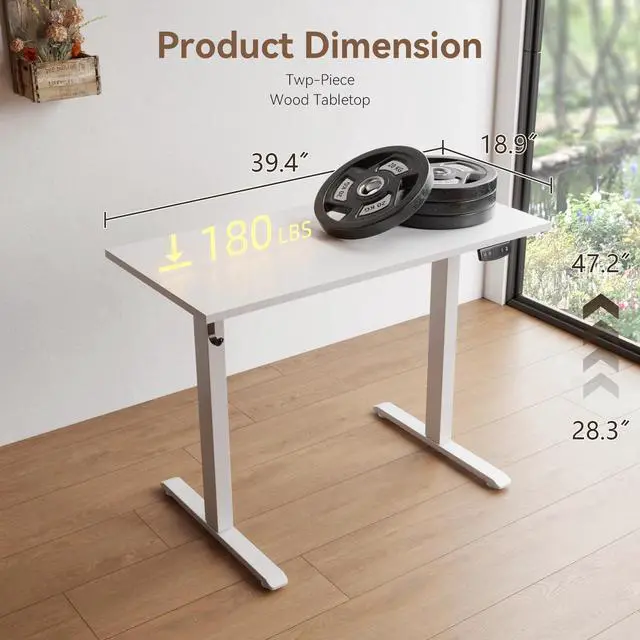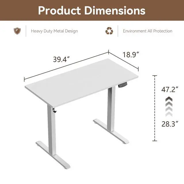 Electric Adjustment: Standing desk can adjust the height between 28.35"-47.24" according to your needs, with 2 memory buttons for different occasions