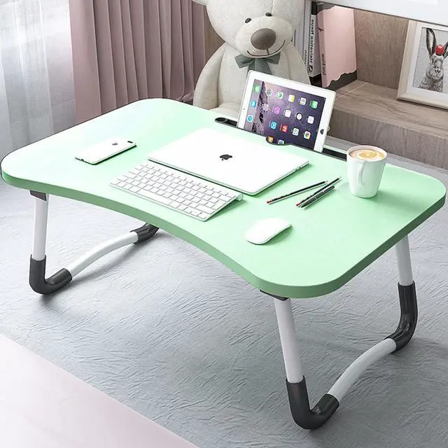 Portable Foldable Lap Desk 23.6 Inch Laptop Table with iPad Slots Cup Holder and Drawer Green