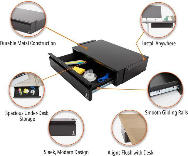 GET ORGANIZED: Keep your office essentials organized and out of sight! Now you can achieve a clean and clutter-free workspace by stowing your pens, pencils, sticky notes, (and snacks!) in your spacious under-desk drawer.