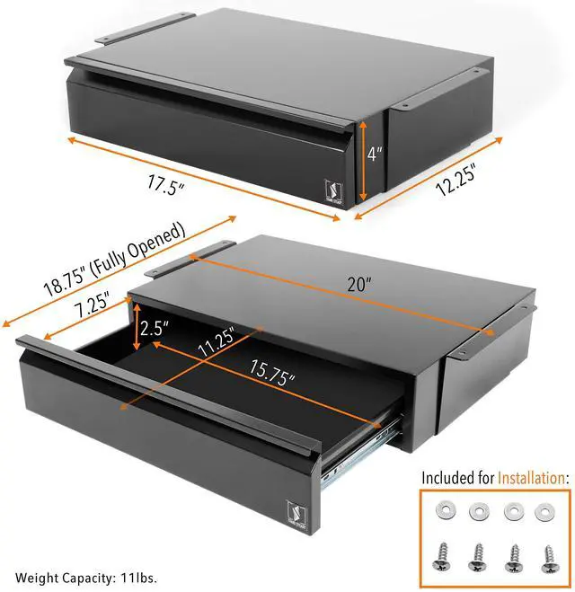 Stand Steady Attachable Under Desk Drawer | Pull-Out Storage Organizer with Smooth Sliding Tracks | Spacious Storage Drawer Easily Mounts to Desks and Workstations (Black / 17.5 x 11.5)
