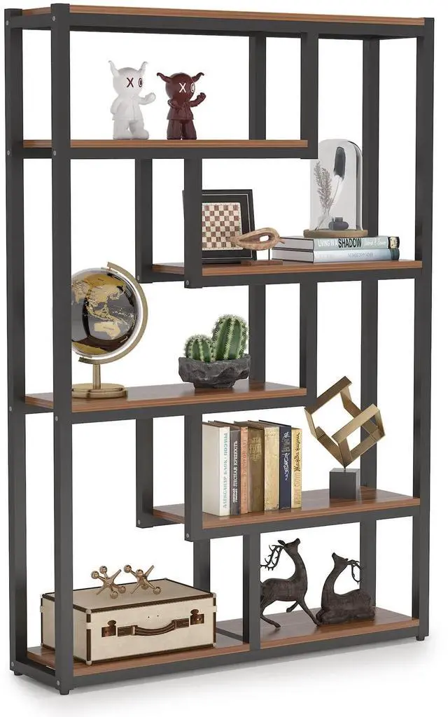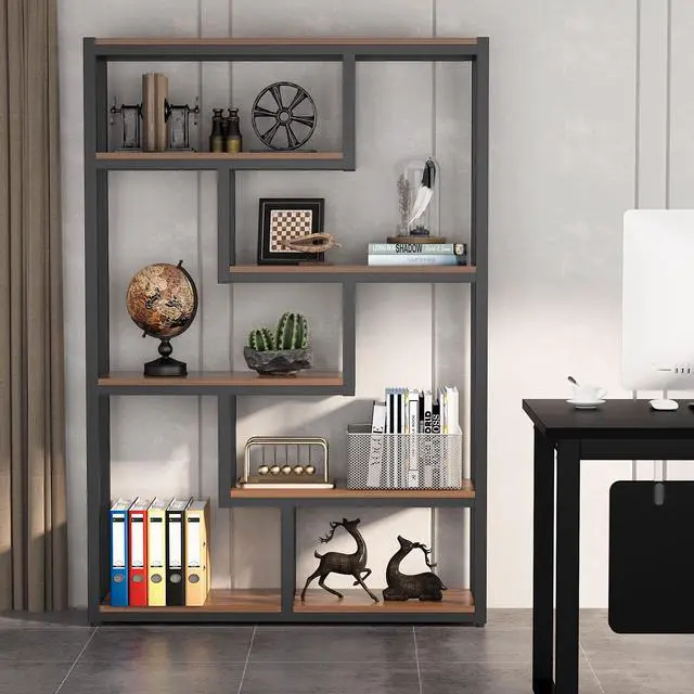 6 tier Industrial Book ShelvesDistinctively industrial-chic design with rich dark walnut shelving (MDF board) on sleek black steel frame, which is ideal for showing books, family photos, artwork etc