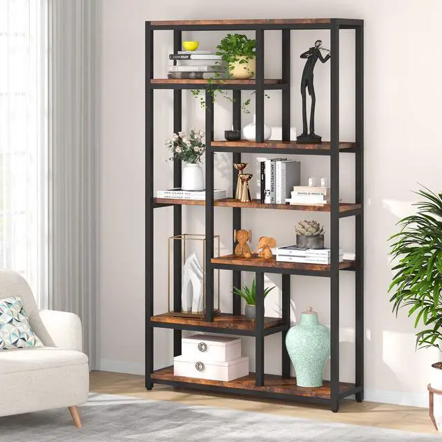 Ample Storage/DisplayFeatures 10 open shelves, this tall bookshelf provide plenty of space for storing and displaying your books, photo frame, pottery, collections, plant, etc. Maximize the vertical wall space and also help keep room tidy and organized
