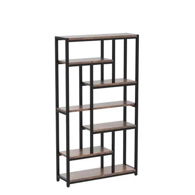 Unique Staggered DesignCombining wood grain and metal, this open bookshelf adds an industrial aesthetic to your home and it can easily fit any room and decor. Fill the bookcase with books, photos and decorations to make it an eye-catching of your home
