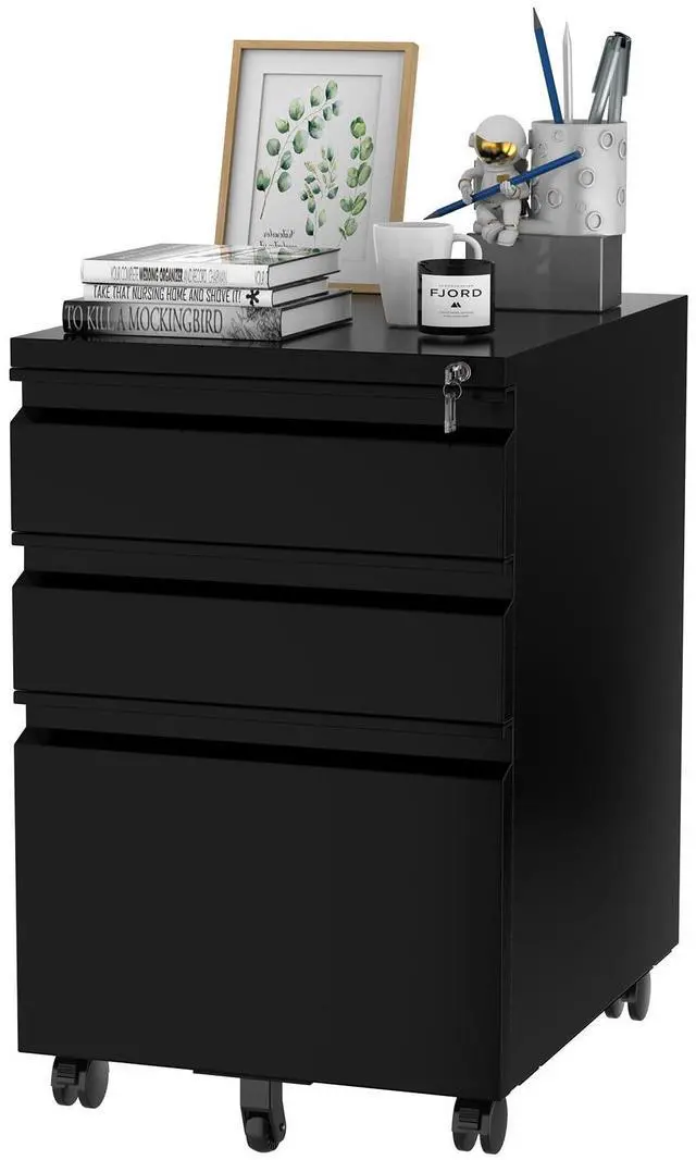 FLEXISPOT 3-Drawer Metal Mobile Filing Cabinet for Home Office - Under Desk Storage with Lock Keys - Legal/Letter/A4 File Organizer - Fully Assembled Except Wheels - Black