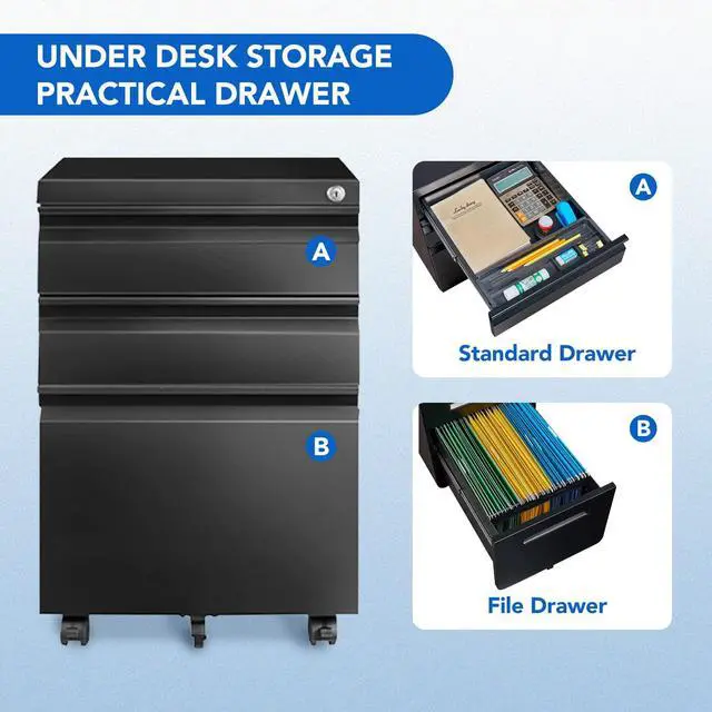 Home Office Under Desk Storage2 standard drawer,1 file drawer ,1 bonus pencil tray,all these drawer combination work together to keep your space tidy and clean.