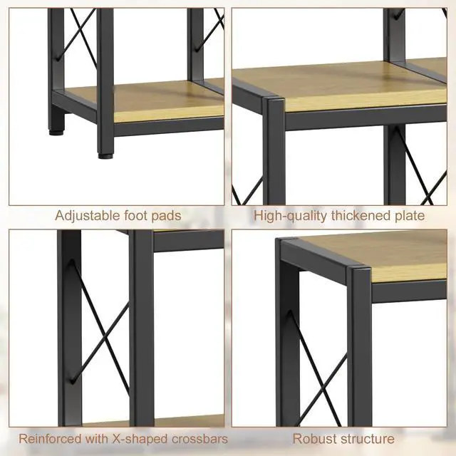 Solid Construction & High Quality- The Corner cabinet adopts thicker iron pipes and e1 grade particleboard. The main metal structure adopts high-hardness steel to meet your load-bearing needs. The back of the corner bookcase adopts an "X"-shaped structure to enhance the stability of the product, avoid