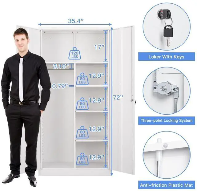 HIGH QUALITY MATERIAL:Whole-in-one reinforced heavy duty metal frame, load capacity up to 80lbs per shelf solid and strong.Environmental protection powder, scratch resistance and rust-resistance.Our metal wardrobe storage cabinets are made of heavy gauge cold-rolled steel plate, sturdy and durable.