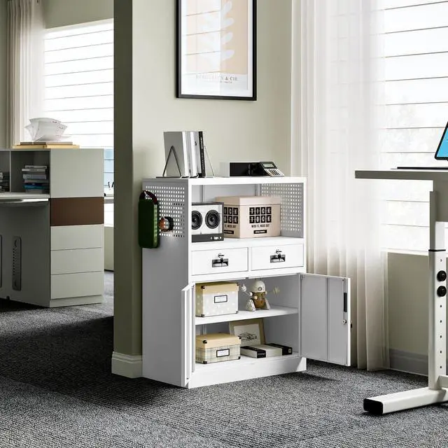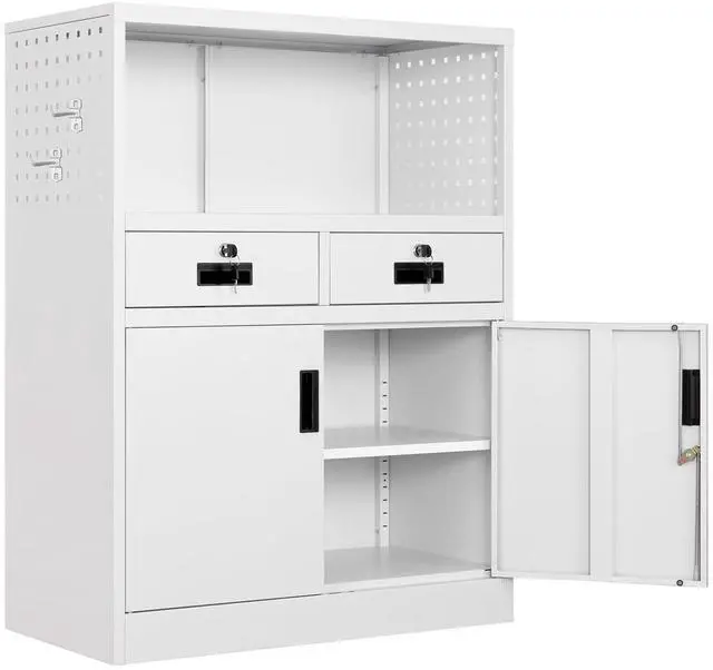 PRACTICAL DESIGN:Our tall metal cabinet equipped with 2 drawers and 1 adjustable shelves to provide adaptability and convenience. High-grade lock picking to secure valuables, two keys are included. Regardless of what your storage needs are, you have the ability to create a unique storage space to suit them.