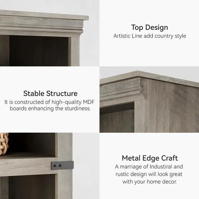 Quality Materials: This oak farmhouse bookcase combines high-density MDF boards and a well-structured wood frame. The crossbars underneath each shelf are designed to increase the weight capacity to 45 pounds per shelf, preventing deformation and warping caused by heavy items to withstand the challenge of long-term use.