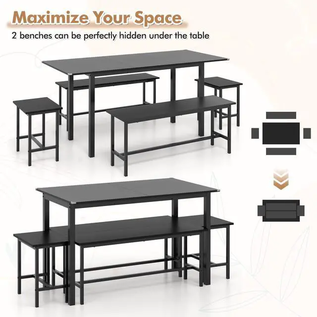Smart Space Utilization: Utilize space efficiently by tucking the benches neatly under the table when not in use, creating room for various activities. Ideal for smaller living spaces like apartments or studios, this 5-piece kitchen table set maximizes space without compromising functionality.