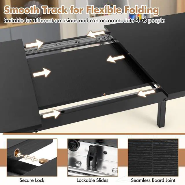 Versatile Dining Experience: Effortlessly accommodate 4-6 guests with the smooth track system of this rectangular dining table, perfect for family meals or gatherings. The secure lock and lockable sides cam ensure stability without any unexpected movementsa must-have for any occasion.