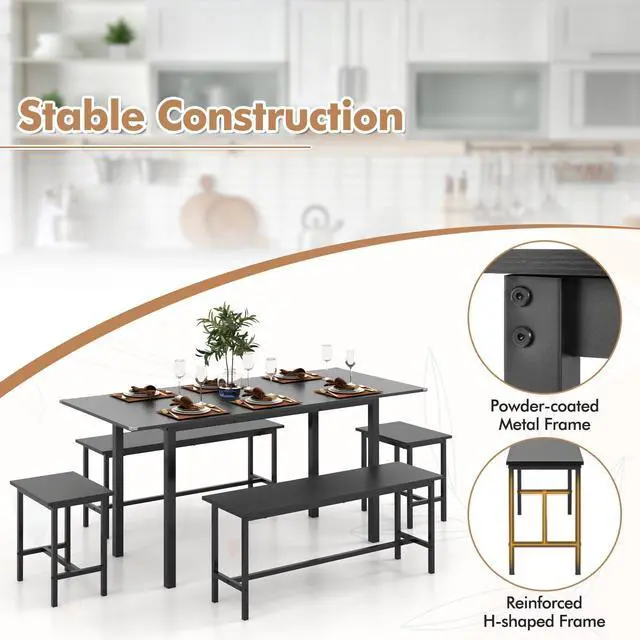 Rugged Durability: Supported by a robust powder-coated metal frame, this modern dinette table set is resistant to deformation and rust, offering long-lasting strength and stability. The H-shaped structure of the dining bench further enhances stability, supporting up to 660 lbs of weight with ease.