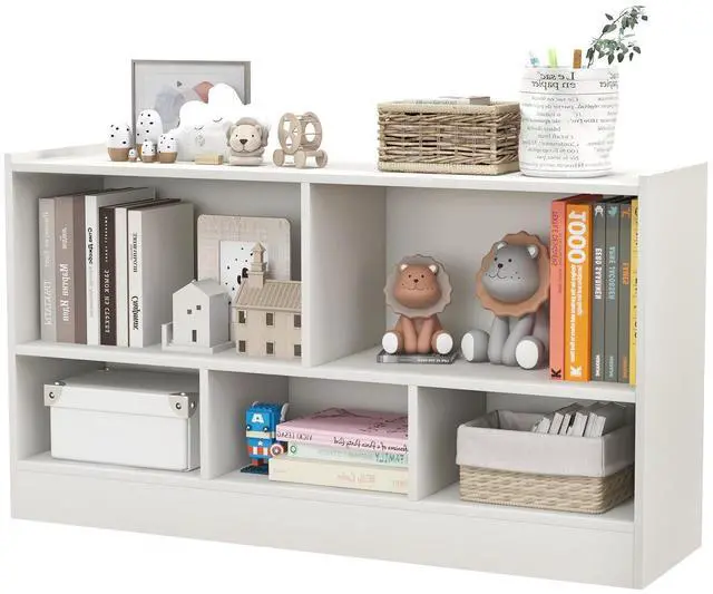 5-Cube Bookcase, 2-Tier Open Display Bookshelf w/Storage, Wooden Cube Storage Organizer for Classroom, Daycare, Living Room, Bedroom, Playroom, Home, Office, 12D x 44W x 24H