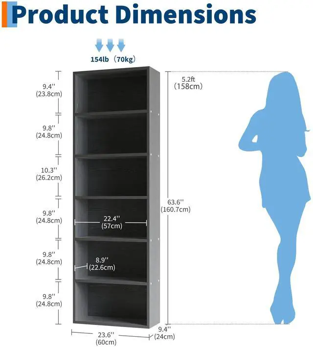 • Vertical Space-Saving: This 6-tier tall bookcase (9.4"D x 23.6"W x 63.3"H) optimizes vertical storage with its open design. Minimalist and stylish, it integrates perfectly into your home decor while keeping all your belongings neatly organized and easy to find