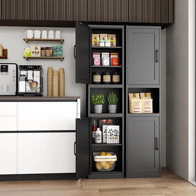 Design to Prevent Tipping: The metal pantry cabinet has an anti tipping configuration and can be fixed on the wall to prevent the cabinet from tipping over during use.