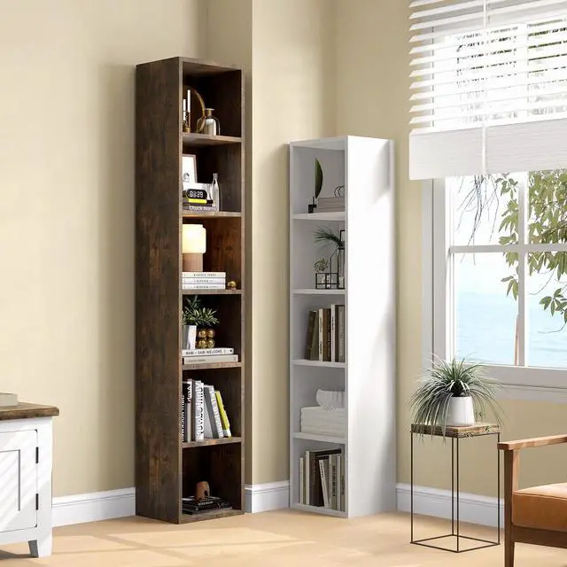 MXV Narrow Bookshelf, 5-Tier Open Bookcase, Coner Shelf, Storage Shelves, Display Storage Shelves, Floor Standing Unit, Home Decor, Furniture for Home Office, Living Room, Bedroom, White