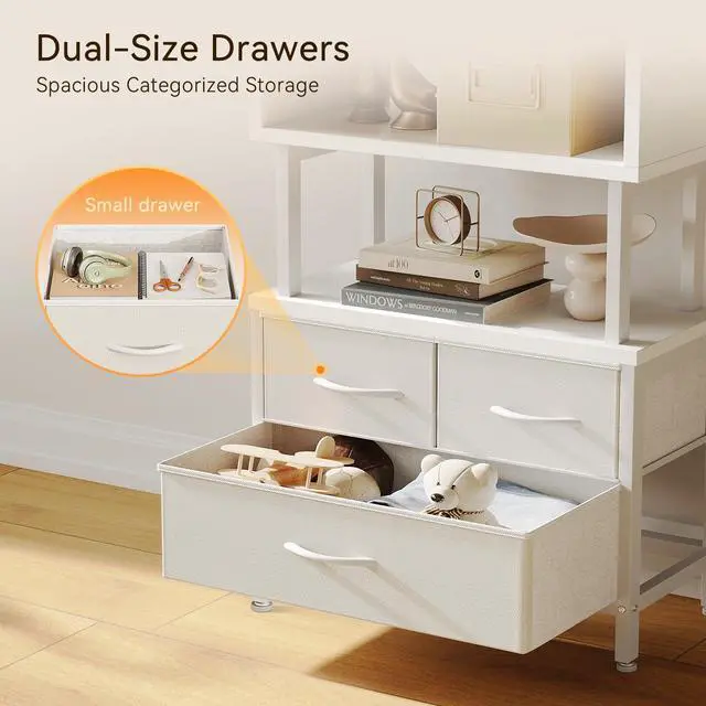Vertical Storage Master - Massive Yet OrganizedThis book shelf combines open and enclosed storage. 5 roomy shelves provide quick access to everyday items while beautifully displaying books, plants, and decor. 2 medium and 1 extra-large drawers offer secure, dust-proof storage to protect your valuables. The space-efficient design maximize your storage capacity while maintaining a compact footprint, ideal for keeping your room clutter-free.