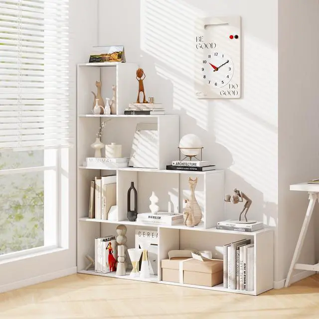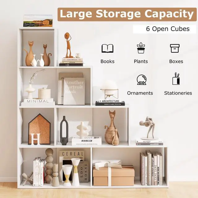 Ample Storage Solution: The 4-tier bookshelf features large storage capacity and is ideal for displaying books, plants, boxes, ornaments, stationeries, etc to keep your home neat. Furthermore, the 6 open cubes make it easy for you to access your items.