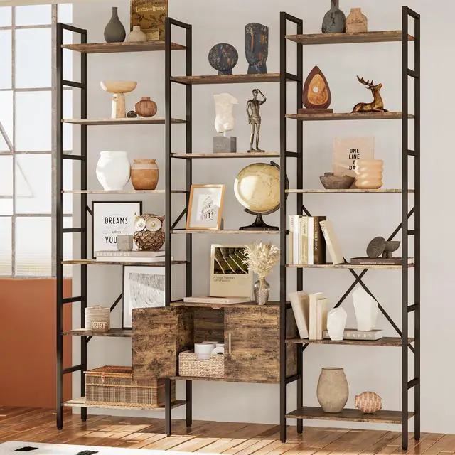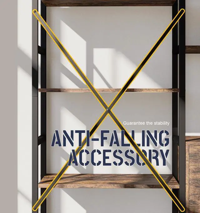 Durable & Stable Construction Tall bookshelf is crafted with a sturdy steel frame and high-quality wood panels. Bookshelves features a X-shaped bracket, adjustable foot pads, and an anti-tipping kit, enhancing the durability and stability of the bookcases. The robust structure ensures a long lifespan, making it a reliable and durable furniture piece in your home.