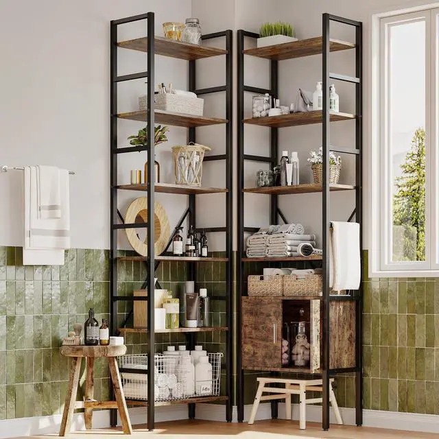 Multi-purpose Bookshelf Bookshelf with storage can be used as display shelf, office shelves, plant shelf, storage shelves, and more. They are perfect for decorating your living room, bedroom, home office, kitchen, and entryway. The industrial color of the display shelf complements your existing furniture in the living room, bedroom, study, or office space.