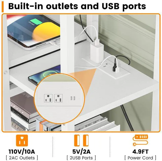 Built-in Outlets and USB Ports: This all-in-one desk and media cabinet perfectly blends form and function. With built-in outlets and USB ports, you can easily charge your multiple electronic devices such as table lamps, phones, tablets