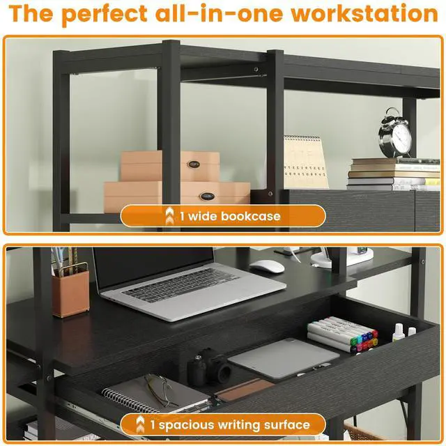 Built-in Outlets and USB Ports: This all-in-one desk and media cabinet perfectly blends form and function. With built-in outlets and USB ports, you can easily charge your multiple electronic devices such as table lamps, phones, tablets
