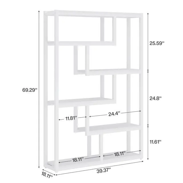 Tribesigns Way to Origin 6-Shelf Industrial Bookshelf, Modern Etagere Bookcase, 69 Inch Tall Storage Display Staggered Shelves with Sturdy Metal Frame for Home Office, White
