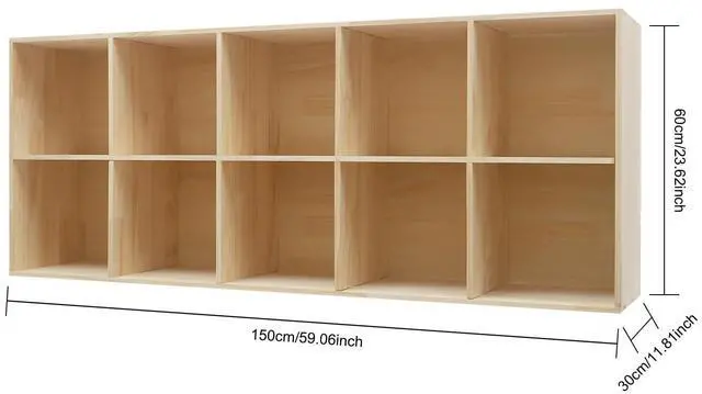 Solid Wood 10 Cube Storage Organizer Small Bookshelf for Small Spaces Wooden Cube Shelf Bookcase Floorstanding Storage Shelves Cubby Storage Organizer for Bedroom Living Room Study (59.06in)