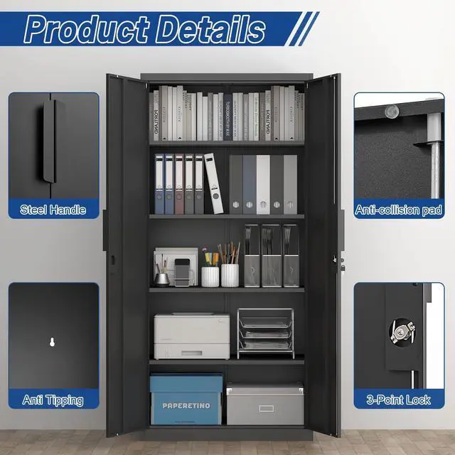 4 Adjustable ShelvesComes with a metal utility cabinets with 4 adjustable shelves. Therefore, you can adjust the ideal height of the shelves as needed to create a unique storage space for your items.