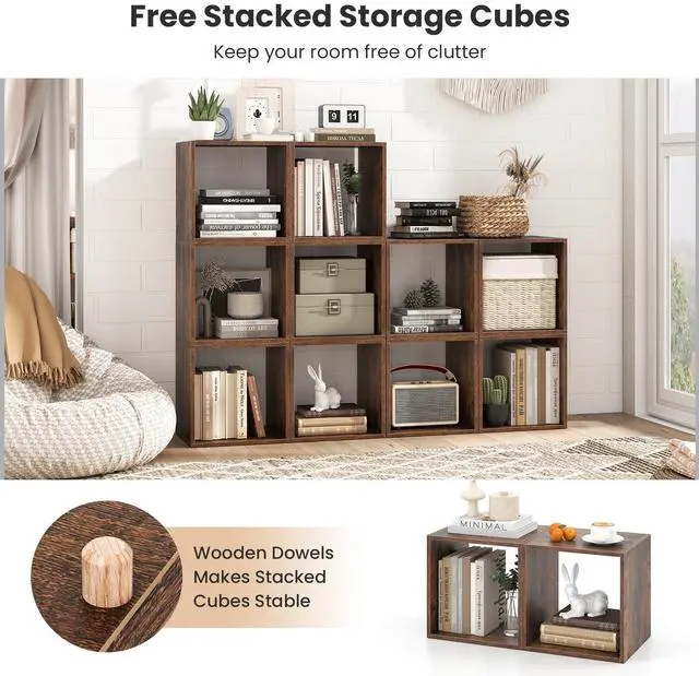 [Durable Material & Reliable Structure]: Crafted from high quality boards, Giantex cube bookshelves are built to last. Each cube's top surface can handle up to 66 pounds, allowing you to display books, potted plants, lamps, or other decorative items with confidence.