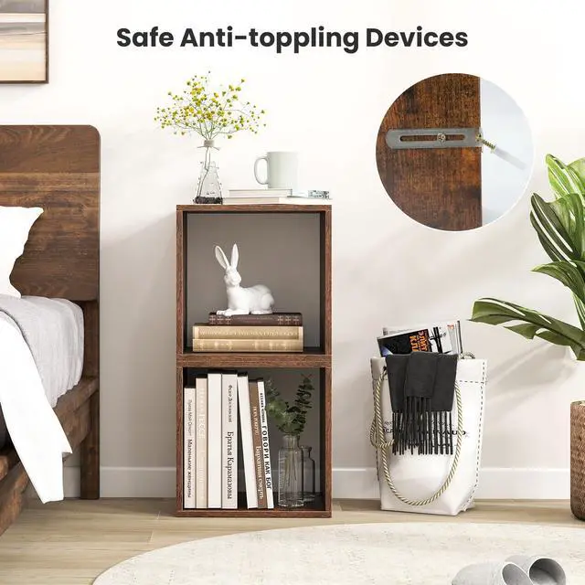 [Free Stacked Storage Cubes]: Place these 2 storage cubes horizontally or vertically to fit your space. Want to create a storage wall? No problem! Simply use multiple sets together to make your furniture layout more flexible. And the wooden dowels make stacked cubes stable.