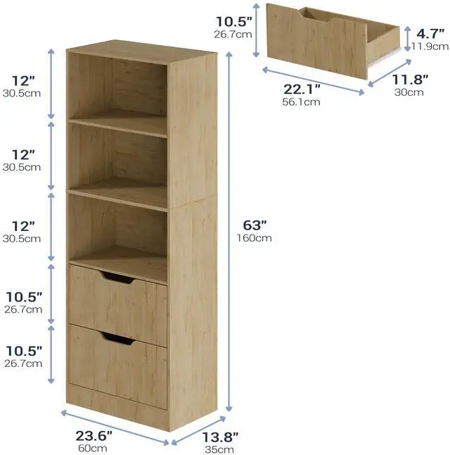 Ample Storage Space & Adjustable Shelf- This bookshelf features 3 open shelves perfect for displaying artwork, awards, books, pictures, and other items, meeting all your storage needs. The bottom 2 drawers provide hidden space for your personal belongings. The adjustable shelf allows you to customize the storage space according to your needs.