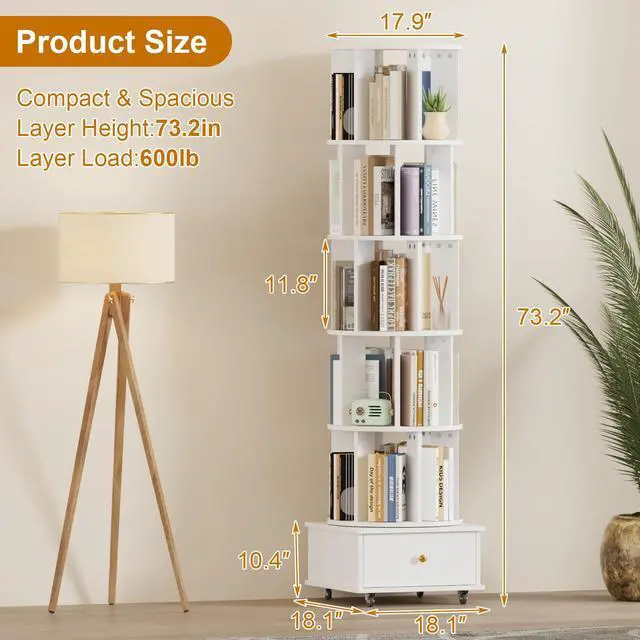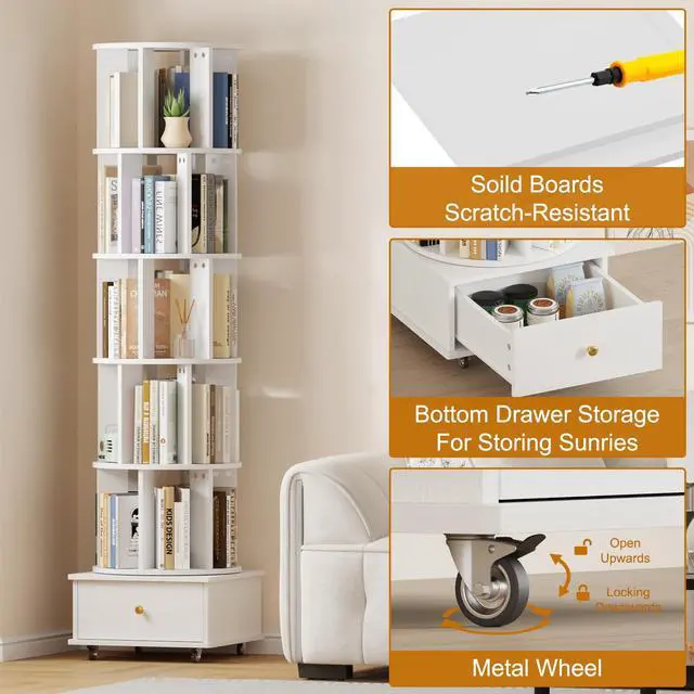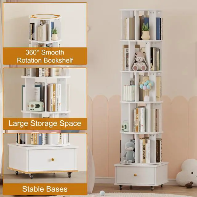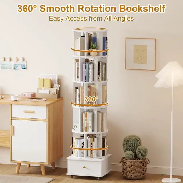 360° Full Rotation for Easy Access- Enjoy effortless access to your books, magazines, and decor with our 360° rotating bookshelf. Simply spin the shelves to reach any item, making organization quick, convenient, and stylish. Perfect for living rooms, bedrooms, or home offices.