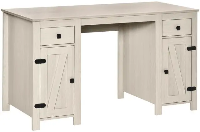 Farmhouse Style: The study desk is designed with cross barn doors, wood grain texture and polished metal accents to add charm to your home office.