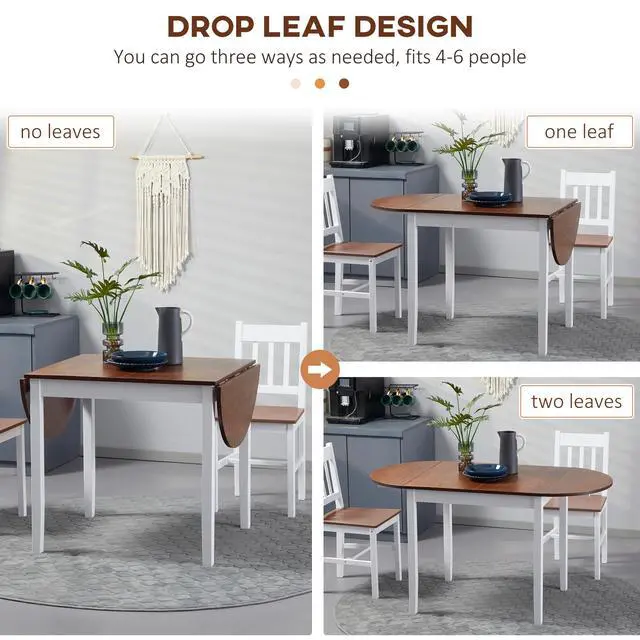 Drop Leaf Design: This small drop leaf table features two hinged drop-down sides and can extend as needed to create more living space or dining space flexibly. When not in use, drop single or both leaves to save space.