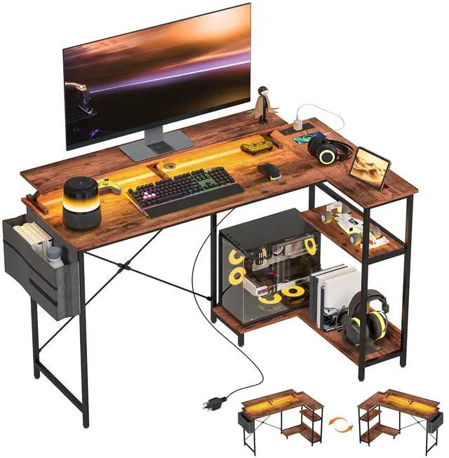 Personalized Lighting: Easily set the great ambiance with the RGB LED light of the pc desk, adjustable in modes, colors, and brightness via a convenient 3-button in-line controller