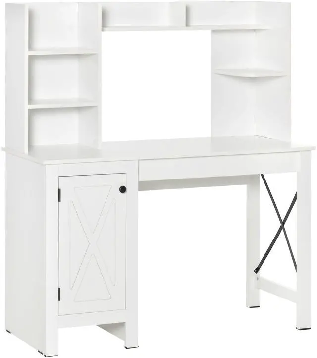 Farmhouse Computer Desk with Hutch and Cabinet, Home office Desk with Storage, for Study, White