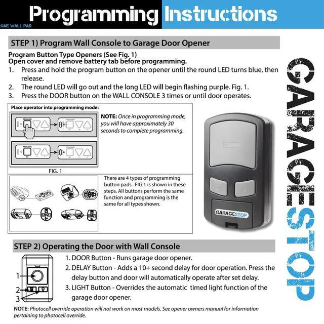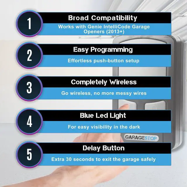 Jogger button to delay the closing of the garage door up to 30 seconds so you can safely exit the garage.