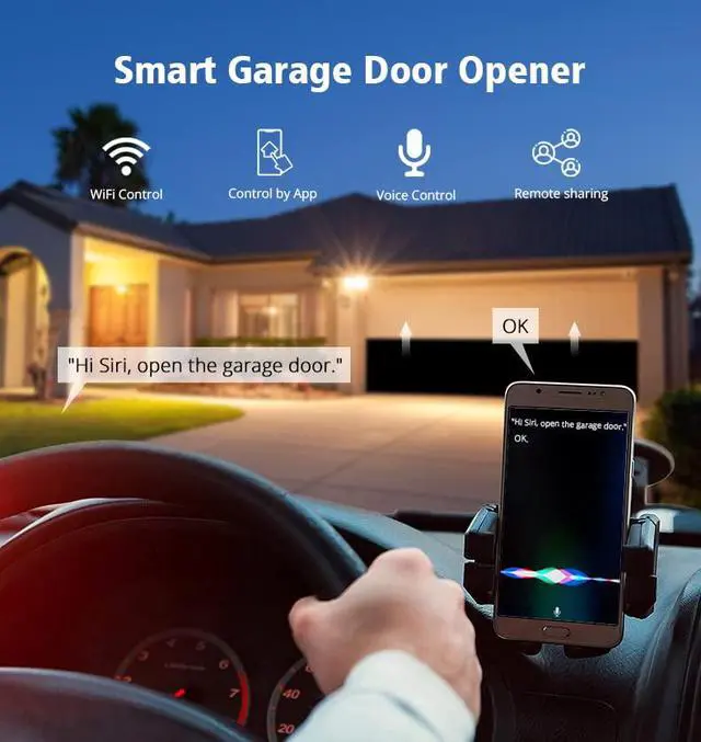 Voice control: Garage Door Opener is compatible with Apple HomeKit, Apple Watch, Siri. Control your smart Opener through voice commands, easily turn on/off (E.g. "Hey Siri, open Garage Door ")