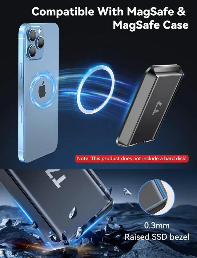 Note: This product does not include a hard disk. Please do not add non-magnetic cases between the iPhone and the product, otherwise the magnetism will be weakened (magsafe cases apply).