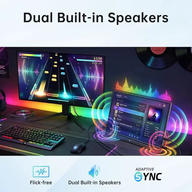 Portable Monitor 15.6 Inch FHD 1080P Travel Monitor for Laptop, MacBook Phone PS5 Xbox Switch, HDMI USB C, HDR, IPS Slim Second Screen with Built-in Speakers